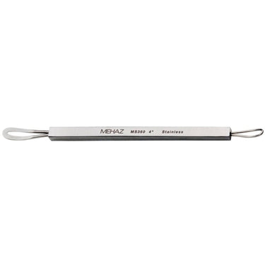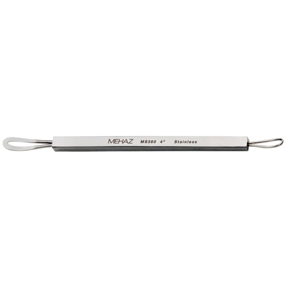 Mehaz Stainless Steel Comedo Extractor 4". Mehaz Stainless Steel Comedo Extractor 4" features flat side for pressing out blackheads and fine side for rolling out whiteheads. Angled loops provide maximum control. Stainless steel.