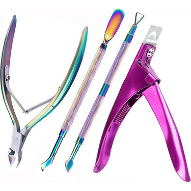 The entire set is coated with a vibrant rainbow finish, adding a touch of elegance and style to your nail care tools. Not only does it look great, but the sturdy construction ensures long-term durability and precise performance. This set is perfect for professionals looking to upgrade their toolkits or for individuals who love to pamper themselves with salon-quality results at home.