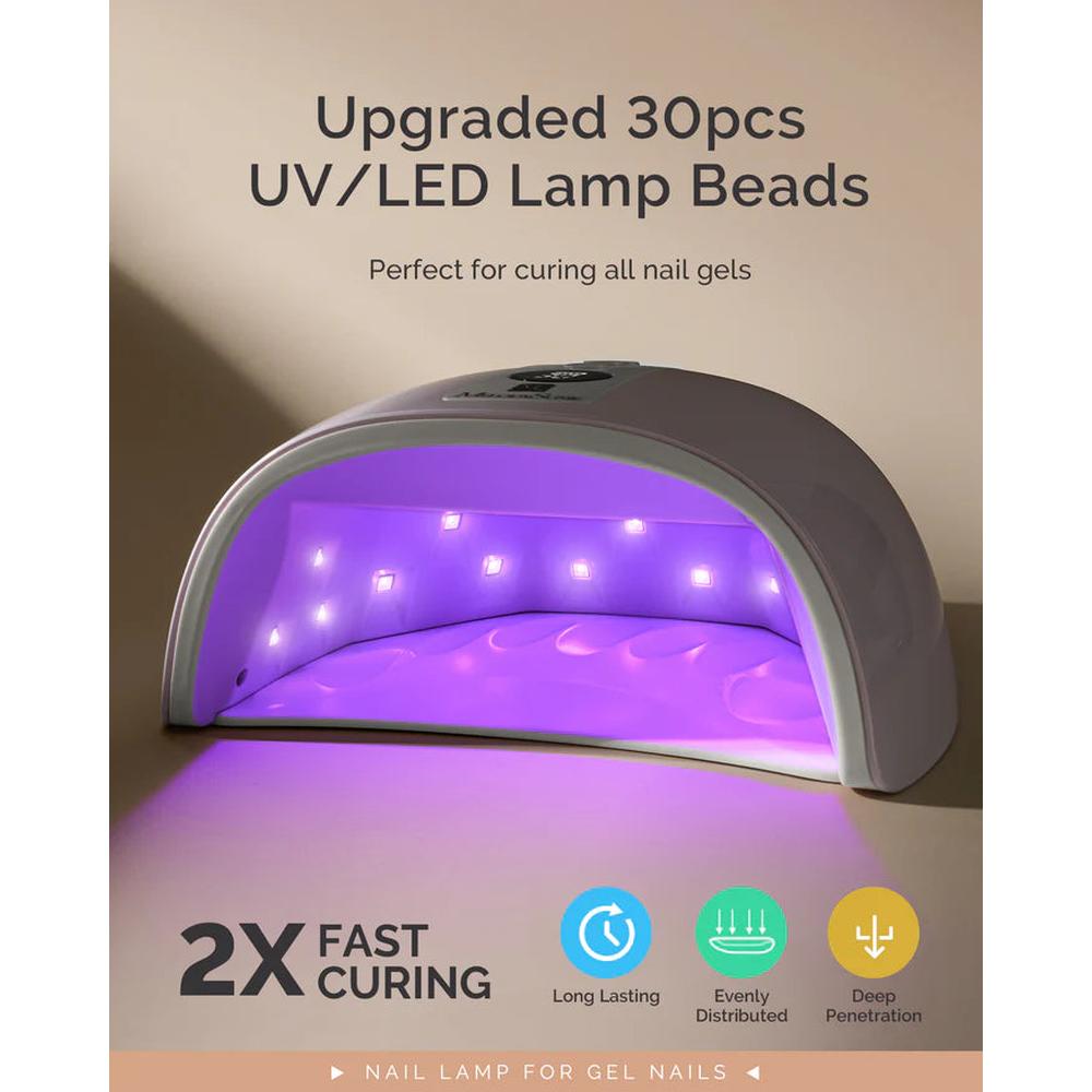 Equipped with 30 premium UV/LED dual light lamp beads, this 48W nail lamp ensures ultra-fast curing for all types of gels, including base coats, top coats, color gels, builder gels, and even rhinestone glue. Whether you are working with a quick-drying gel or a thick, full-coverage gel, this lamp delivers uniform curing, ensuring a smooth and long-lasting finish on every nail. The high power and dual light source technology speed up the curing process without compromising on the integrity of the gel, keeping your clients satisfied and your services quick.