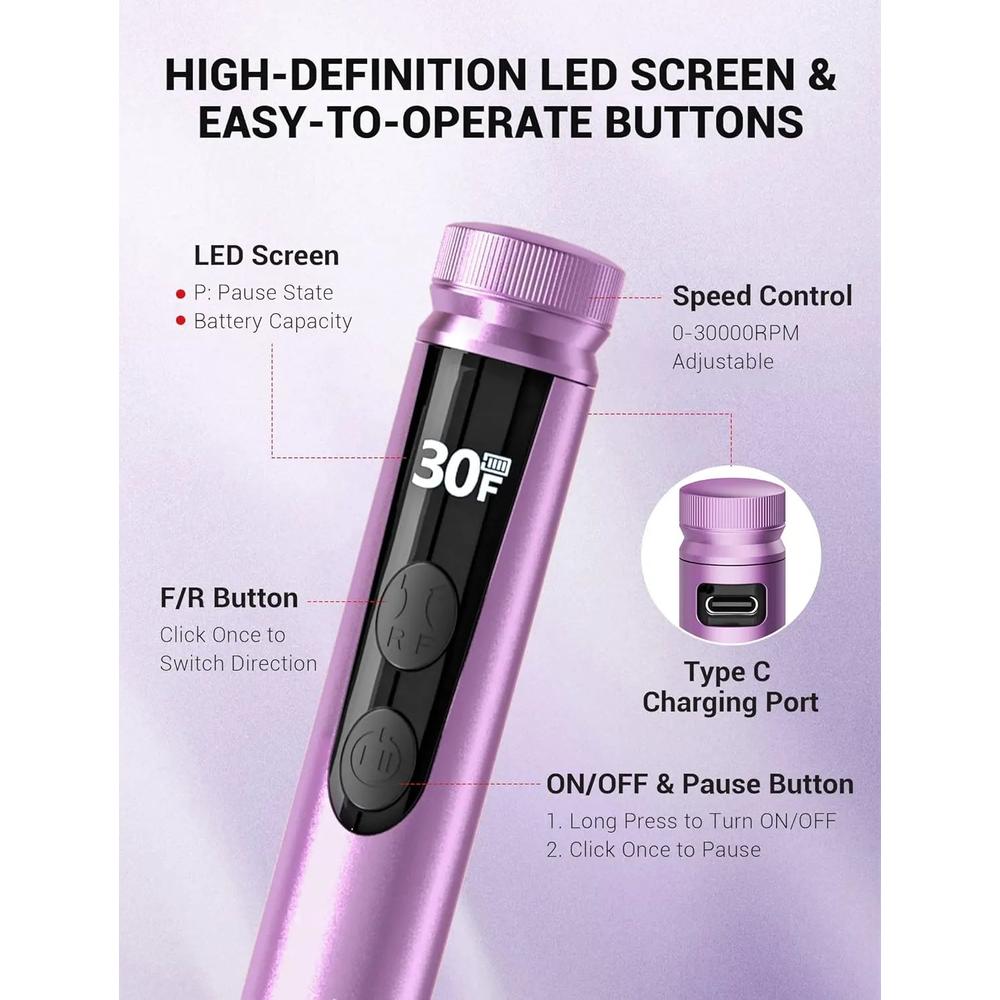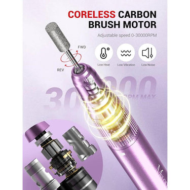 MelodySusie Recharge Portable & Stepless Speed Rechargeable Nail Drill 30000RPM - Purple