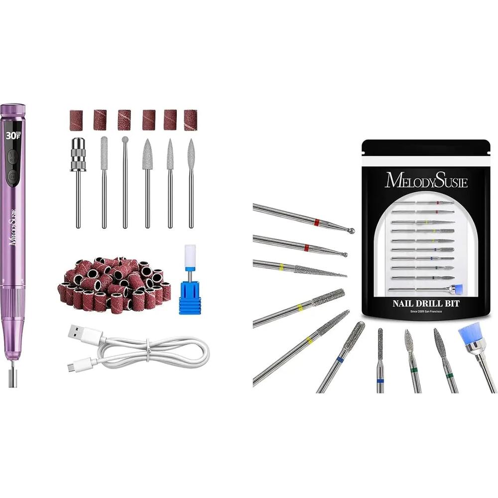 The MelodySusie Rechargeable Nail Drill comes with everything you need to start your journey toward flawless nails. Included in the package are the drill itself, a 50-piece set of colorful professional sanding bands, a set of ceramic and regular drill bits, a power supply, and a user manual to guide you through setup and usage. With this all-in-one set, youll be ready to tackle any nail task from start to finish, all in one convenient package.