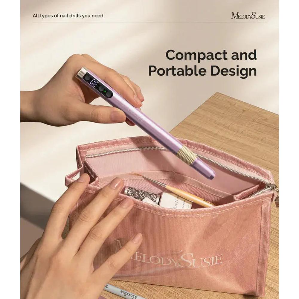 Compact and lightweight, the MelodySusie PM180G Nail Drill is designed with portability in mind. Its sleek, purple exterior makes it stylish and easy to carry, fitting effortlessly into your beauty kit or bag. With this portable design, you can take it anywhere, whether you're working at a salon, attending a mobile service, or simply doing your own nails at home. Theres no need to sacrifice performance for portability this powerful tool ensures that you can create intricate nail designs anytime, anywhere.