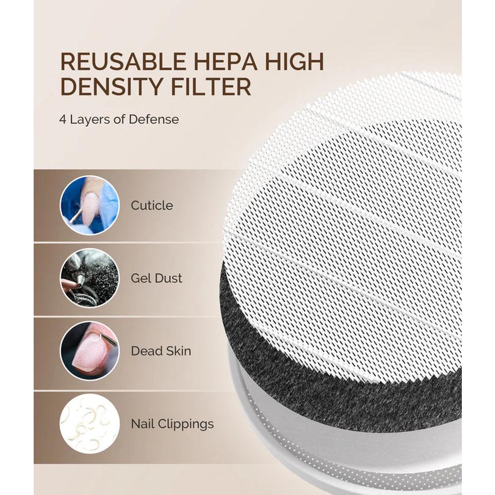 Providing you with a 100% vacuum effect, this nail dust collector ensures that dust, debris, and harmful particles are efficiently vacuumed away. The high-power suction fan, coupled with a reusable fine filter, provides 360-degree dust collection, ensuring a clean environment for both you and your clients. Say goodbye to airborne dust that can disrupt your work and your client healthhis dust collector keeps your workspace pristine during manicures and pedicures, promoting a healthier, more enjoyable service.