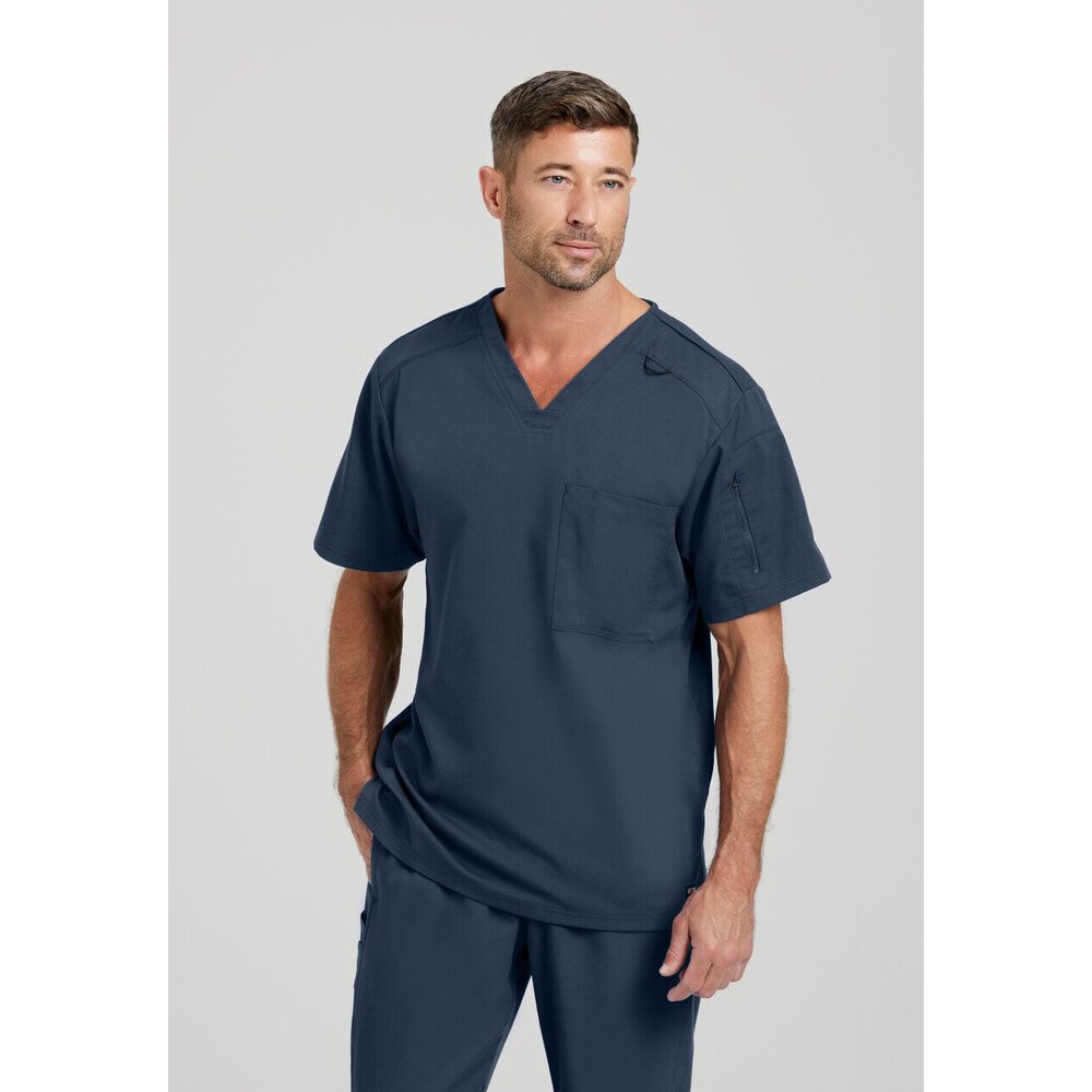 Men's Murphy Scrub Top - Greys Anatomy Spandex Stretch Collection / Color - Steel / Fit - Regular / Sizes - XS, S, M, L, XL, 2XL, 3XL by Barco Uniforms