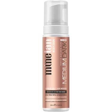 MineTan - Medium Dark Self Tan Mousse / 6.7 oz. - 200 mL. FOR FAIRER SKIN TONES OR FIRST TIME TANNERS. TRIPLE ACTION FORMULA. COCONUT SCENTED. Achieve subtle bronzed, glowing skin in as little as an hour with MineTan Medium Dark Self Tan Mousse. Perfect for first time tanners or those with fair complexions. The Triple Action Formula of our 3 tan actives Erythrulose, DHA & Bronzers works to produce a more even, longer-lasting, streak-free finish whilst keeping the skin deeply and more consistently hydrated - all to develop the deepest, most natural looking tan attainable. Lightweight, fast drying and with a tropical coconut scent its your perfect partner to get that iconic beach bronze.