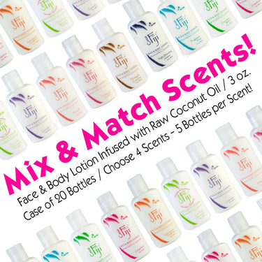 Mix & Match Scents! Face & Body Lotion Infused with Raw Coconut Oil / 3 oz. / Case of 20 Bottles / Choose 4 Scents - 5 Bottles per Scent! by Organic Fiji by Organic Fiji