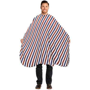 Modern Striped Cutting Cape / 50" x 57". Looking for a cutting cape that's both functional and stylish? Look no further than our Modern Striped Cutting Cape. Made from 100% polyester, this cape is not only durable and lightweight, but also water-resistant and static-free. It provides full coverage and protection, so you can focus on giving your clients the perfect cut every time. And with its snap neck closure, it's easy to put on and take off. Plus, it's machine washable for easy cleaning. Don't settle for a boring cutting cape - upgrade to our Modern Striped Cutting Cape today and stand out from the crowd.