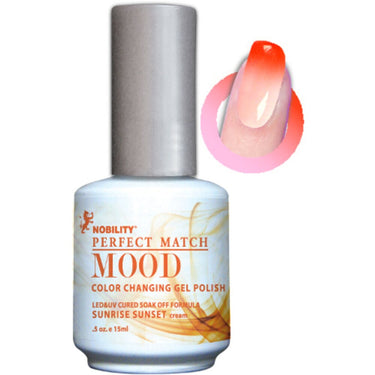 Mood Color Changing Soak Off Gel Polish - Sunrise Sunset by LeChat. Noblity gel polish applies like nail polish but wears like gel. This revolutionary, quick-and-easy gel polish cuts the service time in half and will give a deep sleek finish without chips, smudges, or drying time. The color is long-lasting and chip-resistant. Nails will look flawless for weeks and stay as perfect as day one. Perfect Match UV&LED Cured Gel Polish MOOD Collection is heat-activated; color varies by your body heat and surroundings. Whether you feel "HOT" or "COLD" your nail language says it all! Gorgeous colors shifted between the most natural gradation, it sure will awe your clients. Please Note: Actual colors may differ due to limitation and variation inherent in the printing process.