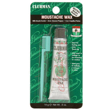 Moustache Wax - Neutral. Create the perfectly-groomed moustache. Features beeswax that provides control and volume, and coconut oil that conditions the hair. All-day formula easily washes out. Equally great for use on sideburns and eyebrows. Includes comb/brush applicator.