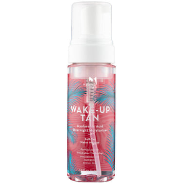 Mystic Tan Wake-Up Tan Hyaluronic Acid Moisturizer Self-Tan Water Mousse / 5.3 fl. Oz. - 172 mL. Hydrating Self-Tan Water Mousse: Luxuriously hydrating self-tan mousse moisturizes and smoothes the skin while creating a long-lasting tan. Goes on clear like a lotion with no worry of color transfer. Apply at night and wake-up tan! Natural looking with all skin tones. Easy application, streak-free, long-lasting tan: Light-weight hydrating self-tan mousse applies and blends easily for a flawless, streak-free, full-body tan that last about a week. Apply more often for a darker tan.
