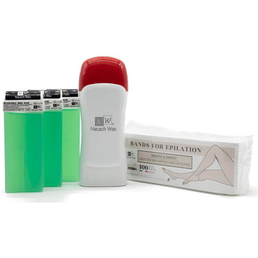 Nacach Wax - Aloe Waxing Kit. Excellent for travel, this professional waxing kit comes with one S/4 single-cartridge warmer, 3 wax cartridges of your choice, and 100 non-woven pre-cut epilating strips. The roll-on wax in this traveling kit is made in Italy with the finest natural hypoallergenic ingredients for optimal hair removal. Our professional waxing kits are ideal for on-the-go estheticians and beauty school students who are just getting started.