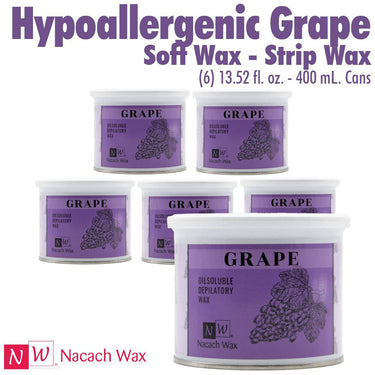 Hypoallergenic Grape Soft Wax - Strip Wax / (6) 13.52 fl. oz. - 400 mL. Cans by Nacach Wax
