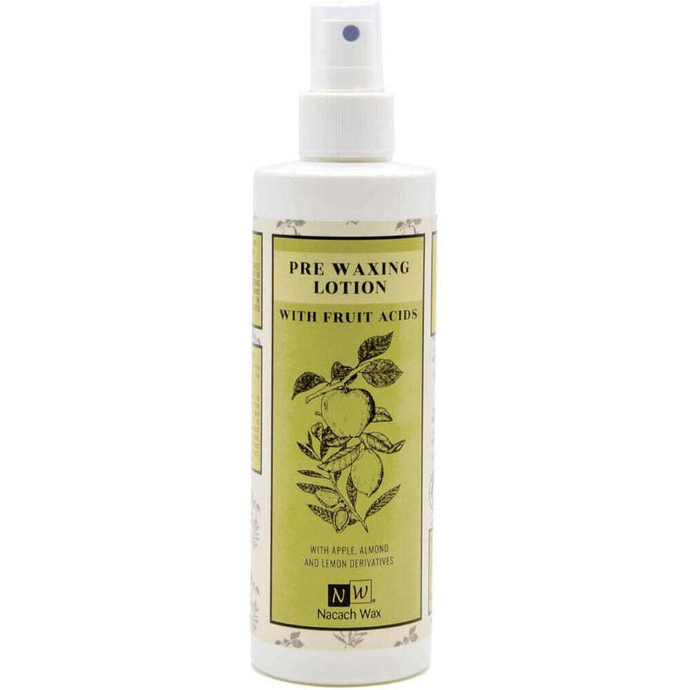 Nacach Wax - Pre Wax Lotion / 8.45 fl. oz. - 250 mL. Made with natural fruit acids, this cleansing lotion perfectly prepares the skin for waxing by removing dead cells on the skins surface. Our pre-waxing lotion contains apple, almond, and lemon derivatives, which gives a fresh citrus scent guaranteed to leave the skin perfectly prepared to be waxed. Nacach pre-waxing lotion, made in Italy with the finest ingredients, it is completely paraben-free and contains no artificial dyes, making it an excellent choice for waxing professionals who want to offer the best possible depilatory service to their clients.