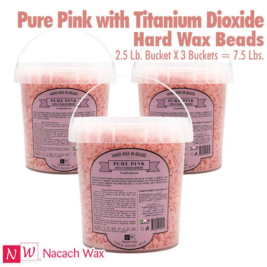Nacach Wax - Pure Pink with Titanium Dioxide Hard Wax Beads / (3) 2.5 Lbs. Buckets = 7.5 Lbs. This high Elastic hair removal creamy hard wax is great for coarse-haired full-body waxing and has a rapid drying period, making it an excellent choice for busy professionals.