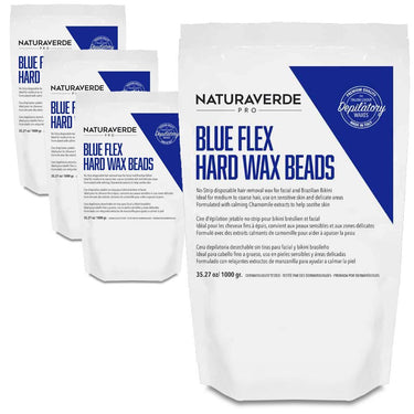 NaturaverdePro - BLUE FLEX HARD WAX BEADS - Made in Italy / Case = 35.27 oz. - 1,000 grams Bags X 4 Bags = 8.82 Lbs