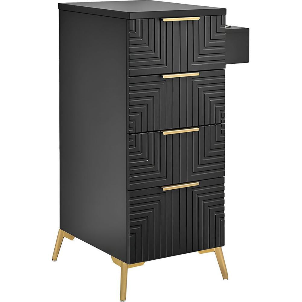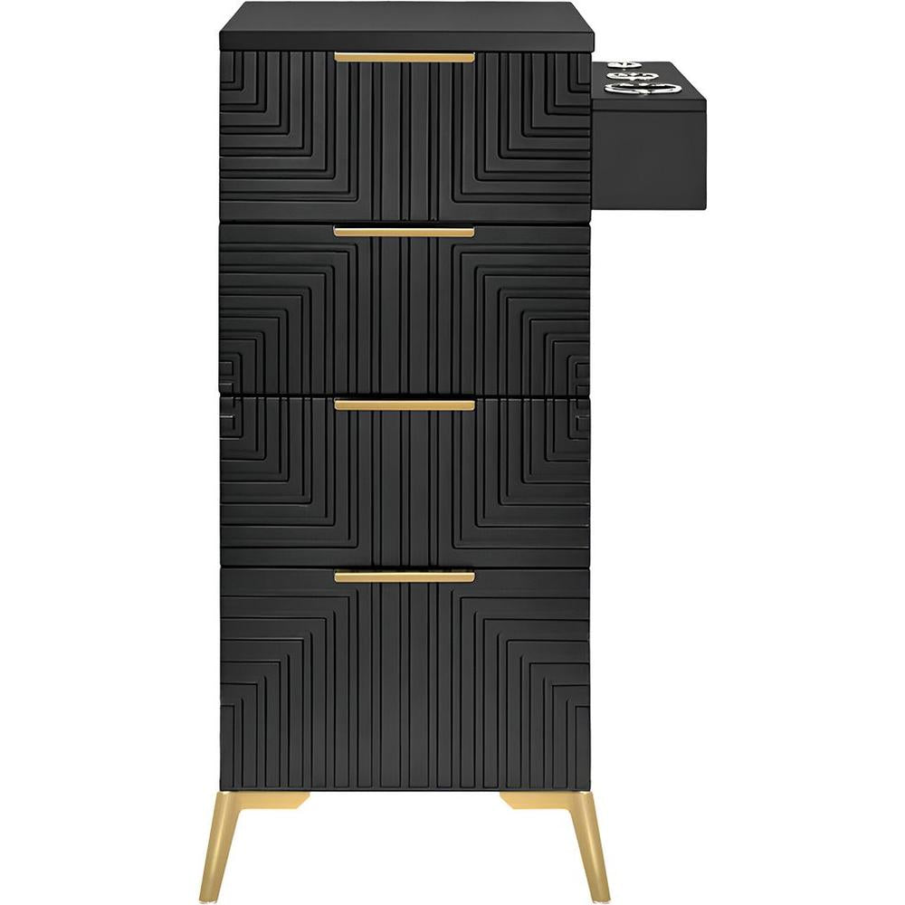 Transform your salon’s workspace with the Noelle Free-Standing Styling Station in Black by Deco Salon Furniture. Designed to blend modern sophistication with practical utility, this styling station is crafted from solid wood, ensuring both durability and a luxurious aesthetic. Its sleek black finish, complemented by gold accents, adds a touch of elegance to any salon or spa environment. Featuring four spacious storage drawers and a convenient tool holder, the Noelle Styling Station keeps your tools organized and within easy reach, enabling you to deliver exceptional service to your clients with efficiency and style.