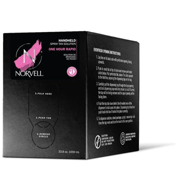 Norvell One Hour Rapid ONE Airbrush Solution / 33.8 fl. oz. - 1 Liter. Prepare to transform your alter ego into reality with ONE. ONE utilizes a proprietary amino acid propulsion system, xLa-R8R, to boost rapid tan development. This enhanced compound prepares the skin while infiltrating its out walls resulting in instant color gratification. Norvell's One Hour Rapid spray tan solution is designed with warm brown undertones to give a natural tan with the ability to rinse sooner to achieve the same great look.