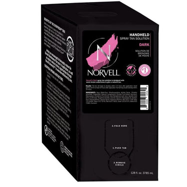 Norvell Premium Dark Airbrush Solution / 1 Gallon - 128 oz. - 3,785 mL. Norvell's Award Winning Premium Solutions utilize micro nutrient technology to deliver a potent blend of vitamins and antioxidants to boost the skin's 'JustOff the Beach' glow. The formula works with all skin types regardless of color tone, creating a customized shade of bronze for each individual client. Norvell's Dark spray tan solution is designed with warm brown undertones to give a natural tan.