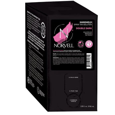 Norvell Premium Double Dark Airbrush Solution / 1 Gallon - 128 oz. - 3,785 mL. Norvell's Award Winning Premium Solutions utilize micro nutrient technology to deliver a potent blend of vitamins and antioxidants to boost the skin's 'JustOff the Beach' glow. The formula works with all skin types regardless of color tone, creating a customized shade of bronze for each individual client. Norvell's Double Dark spray tan solution is designed with warm brown undertones to give a deeper, darker natural tan.