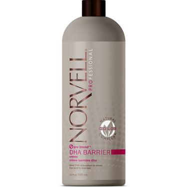 Norvell Pro Blend DHA Barrier Cream / 34 fl. oz.- 1,005 mL. The answer to over-browning in cuticles, knees, elbows, hands, feet and otherdry areas. Unlike petroleum based products, Pro Blend Barrier Cream is a high quality, intense moisturizer that allows for a perfect color blend around areas that have a tendency to over-tan.