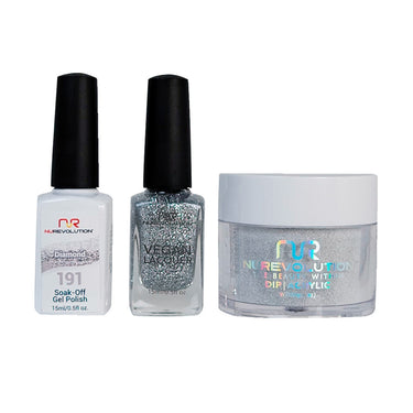 NR Elite Trio: Gel Polish + Lacquer + Dip/Acrylic Powder - #MS191 Diamond by NuRevolution / Gel Polish 15 mL. + Lacquer 15 mL. + Dip/Acrylic 2 oz.
