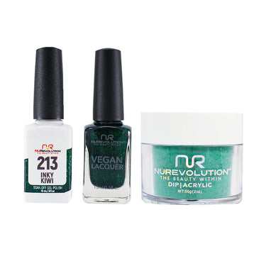 NR Elite Trio: Gel Polish + Lacquer + Dip/Acrylic Powder - #MS213 Inky Kiwi by NuRevolution / Gel Polish 15 mL. + Lacquer 15 mL. + Dip/Acrylic 2 oz.
