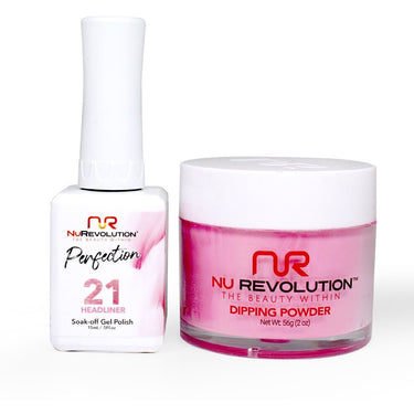 NR Perfection Set: Gel Polish + Dip/Acrylic Powder - #PFS021 Cotillion by NuRevolution / 15 mL. Gel Polish + 2 oz. Dip/Acrylic Powder by NuRevolution. The Perfection Line is the highest quality for professional use. Easy to apply. Strong & Long lasting. The finest Dipping Powder & the most solid and bold Gel Polish.