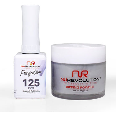 NR Perfection Set: Gel Polish + Dip/Acrylic Powder - #PFS125 Platinum by NuRevolution / 15 mL. Gel Polish + 2 oz. Dip/Acrylic Powder by NuRevolution. The Perfection Line is the highest quality for professional use. Easy to apply. Strong & Long lasting. The finest Dipping Powder & the most solid and bold Gel Polish.