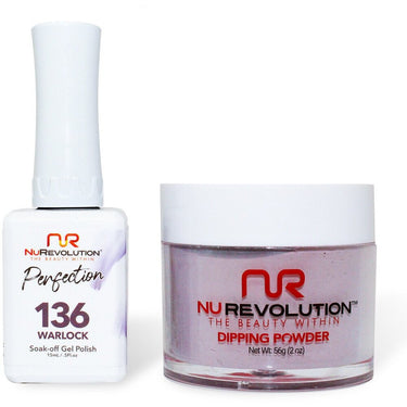 NR Perfection Set: Gel Polish + Dip/Acrylic Powder - #PFS136 Warlock by NuRevolution / 15 mL. Gel Polish + 2 oz. Dip/Acrylic Powder by NuRevolution. The Perfection Line is the highest quality for professional use. Easy to apply. Strong & Long lasting. The finest Dipping Powder & the most solid and bold Gel Polish.