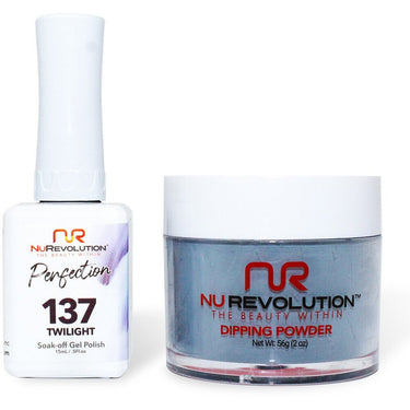 NR Perfection Set: Gel Polish + Dip/Acrylic Powder - #PFS137 Twilight by NuRevolution / 15 mL. Gel Polish + 2 oz. Dip/Acrylic Powder