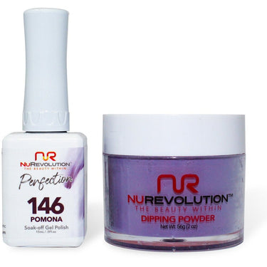 NR Perfection Set: Gel Polish + Dip/Acrylic Powder - #PFS146 Pomona by NuRevolution / 15 mL. Gel Polish + 2 oz. Dip/Acrylic Powder by NuRevolution. The Perfection Line is the highest quality for professional use. Easy to apply. Strong & Long lasting. The finest Dipping Powder & the most solid and bold Gel Polish.