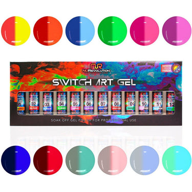 NuRevolution Gel Liner Temperature Switch Set - Soak Off Gel Polish and Gel Liner Brush - Nail Art / 12 colors - 8 mL. Each by NuRevolution. Nail salons, get ready to take your designs to the next level with our set of (12) 8 mL highly pigmented Temperature Switch Soak Off Gel Polishes and Gel Liner Brushes. This highly pigmented formula is easy to apply and provides long-lasting results. Create unique and fashionable looks with ease and highlight your clients' nails like never before. With our portable and durable solution, you can DIY the style that you and your clients love. Upgrade your nail art game today!