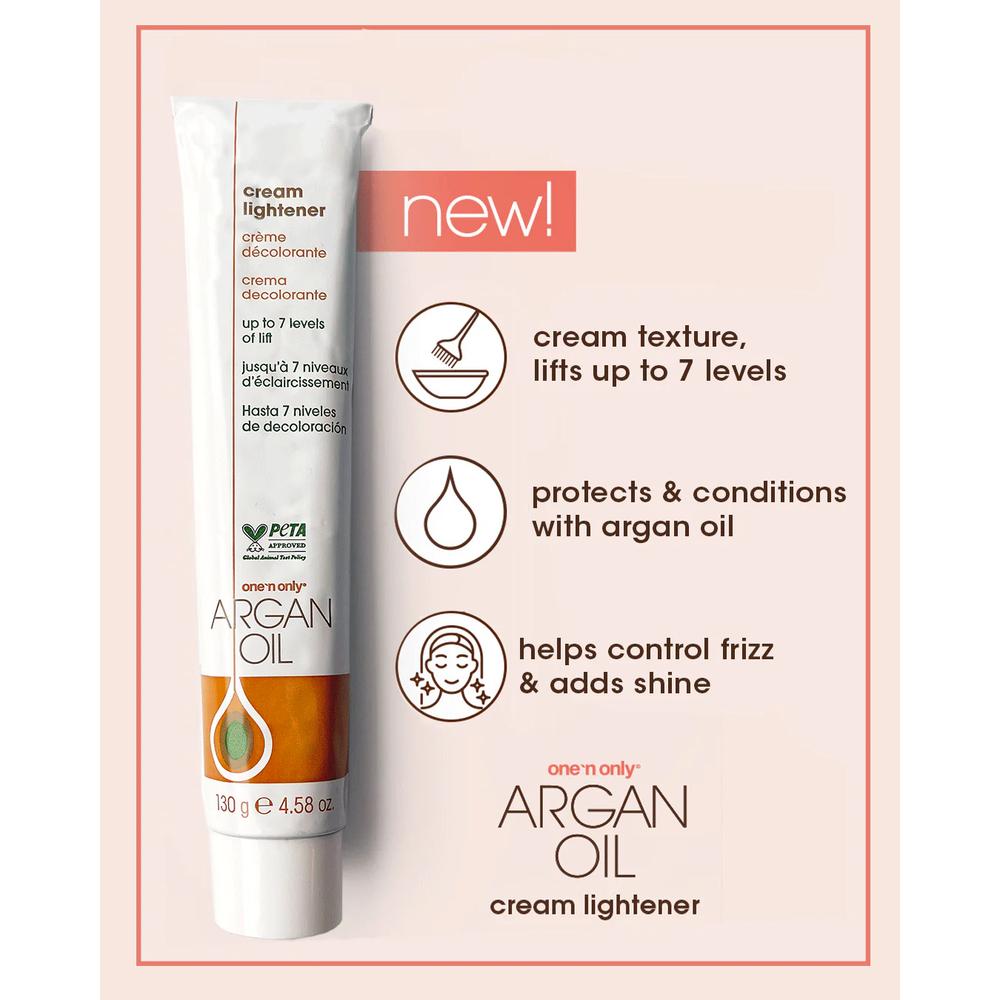 Elevate Your Salon Experience with One 'N Only Argan Oil Cream Lightener. Transform your clients' hair with the luxurious treatment of One 'N Only Argan Oil Cream Lightener. Crafted for discerning salon professionals like you, this premium lightening formula offers more than just color change—it's a holistic experience that elevates hair health and beauty to new heights.