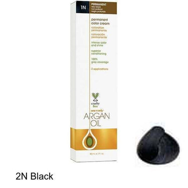 One 'N Only Argan Oil Permanent Cream Color - 2N Black / 3 oz. One 'n Only™ Argan Oil Permanent Color cream is a hair color breakthrough! Advanced micro pignments combine with precious argan oil for luminous color, rich gray coverage, brilliant shine, and unmatched conditioning. Argan oil penetrates deep into the hair shaft to nourish, repair and lock in moisture, instantly smoothing the cuticle and improving elasticity. The low-ammonia formula provides deep color penetration and longer-lasting, consistent results.