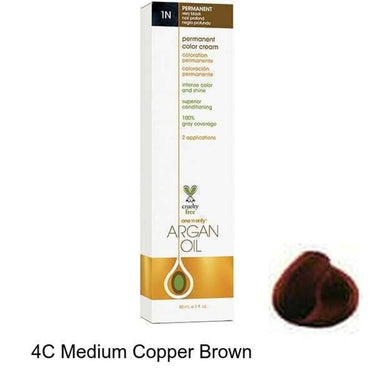 One 'N Only Argan Oil Permanent Cream Color - 4C Medium Copper Brown / 3 oz. One 'n Only™ Argan Oil Permanent Color cream is a hair color breakthrough! Advanced micro pignments combine with precious argan oil for luminous color, rich gray coverage, brilliant shine, and unmatched conditioning. Argan oil penetrates deep into the hair shaft to nourish, repair and lock in moisture, instantly smoothing the cuticle and improving elasticity. The low-ammonia formula provides deep color penetration and longer-lasting, consistent results.