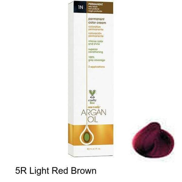 One 'N Only Argan Oil Permanent Cream Color - 5R Light Red Brown / 3 oz. One 'n Only™ Argan Oil Permanent Color cream is a hair color breakthrough! Advanced micro pignments combine with precious argan oil for luminous color, rich gray coverage, brilliant shine, and unmatched conditioning. Argan oil penetrates deep into the hair shaft to nourish, repair and lock in moisture, instantly smoothing the cuticle and improving elasticity. The low-ammonia formula provides deep color penetration and longer-lasting, consistent results.