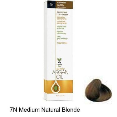 One 'N Only Argan Oil Permanent Cream Color - 7N Medium Natural Blonde / 3 oz. One 'n Only™ Argan Oil Permanent Color cream is a hair color breakthrough! Advanced micro pignments combine with precious argan oil for luminous color, rich gray coverage, brilliant shine, and unmatched conditioning. Argan oil penetrates deep into the hair shaft to nourish, repair and lock in moisture, instantly smoothing the cuticle and improving elasticity. The low-ammonia formula provides deep color penetration and longer-lasting, consistent results.