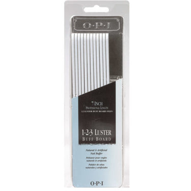 OPI 1-2-3 Luster Buff Board - 7" - 400/800/1200 Grit / Pack of 12 by OPI. This quick, easy-to-use, washable buffer is ideal for imparting a glossy natural-looking shine without polish on artificial and natural nails. For a glossy, natural-looking shine without polish on both natural and artificial nails. 7" - 400/800/1200 Grit