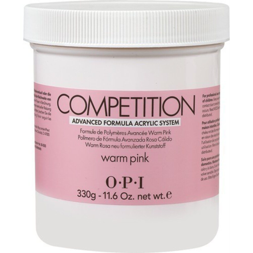 OPI Competition Powder - Advanced Formula Acrylic System - Warm Pink / 11.64 oz. by OPI. These Ultra-fine Powders feature an ultra-fine texture and UV stabilized formula for lasting, non-yellowing color clarity. Available in six shades for the ultimate in custom color effects. This product is for Professional Use Only.