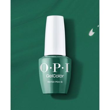 OPI GelColor Gel Nail Polish - Rated Pea-G (Creme). Bring fresh, vibrant color to your clients' nails with OPI GelColor Rated Pea-G. This green gel nail polish is the epitome of playful elegance, offering a lush, glamorous hue that’s perfect for springtime and beyond. Ideal for spas and salons, Rated Pea-G gives clients a bright, refreshing pop of green that works well with both casual and sophisticated styles. Whether used for a full manicure or to accentuate a creative nail art design, this gel polish delivers bold, long-lasting color with flawless shine.