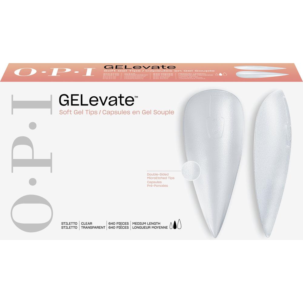 OPI GELevate™ Soft Gel Tips - Stiletto Shape. Bold, edgy, and ready to make a statement—OPI GELevate™ Stiletto Soft Gel Tips combine fierce style with unmatched performance. Engineered for salon professionals who demand precision, speed, and staying power, these tips offer a seamless application with a crystal-clear finish and built-in strength that lasts for weeks. With 640 tips per box and a wide size range, you’re equipped to satisfy clients who want high-drama nails without high-maintenance touch-ups.