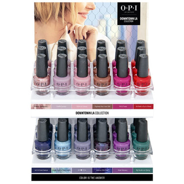 OPI Nail Lacquer - Downtown LA Collection / 36 Piece Acrylic Display. OPI Nail Lacquer - Downtown LA Collection / 36 Piece Acrylic Display. Downtown LA is an expansive playground for inspiration. With historic architecture, sprawling street art, and open sky, it changes from day to night inspiring artists with its spectrum of rich, vibrant hues. Colorusinspired.