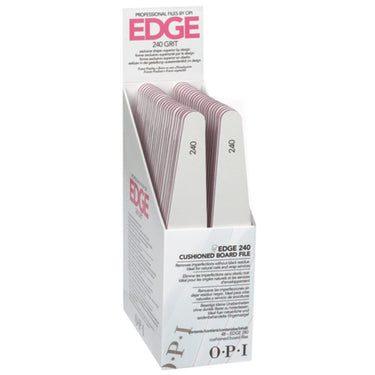 OPI Professional File - Edge White - 240 Grit / Pack of 48 by OPI. OPI Professional File - Edge White - 240 Grit / Pack of 48. OPI offers a complete collection of EDGE Cushioned Board Files and FLEX Buffers and Shiners with OPI's exclusive, ergonomically-designed, contoured shape for faster finishing with less filing fatigue.