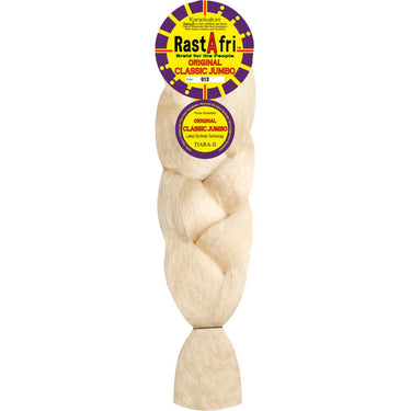 Original Classic Jumbo Braid - Color 613 by Rastafri. The Original Classic Jumbo Braid in Color 613 by Rastafri is the ideal choice for professional stylists who demand high-quality synthetic hair for creating versatile braided styles. Made from 100% modacrylic fiber by Kanekalon, this braiding hair provides the perfect combination of volume, elasticity, and flexibility to ensure beautiful, long-lasting braids. Whether you're crafting intricate dreads, twists, or elaborate curly braids, this premium braiding hair delivers the softness and durability needed to maintain a flawless look.