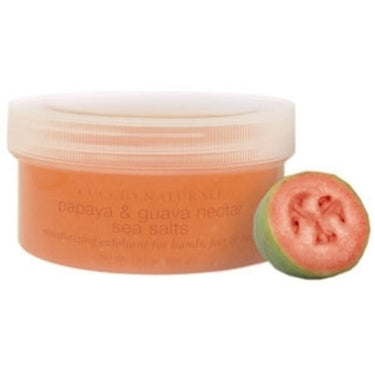 Papaya & Guava Nectar Sea Salts: A Tropical Spa Experience. Transform every spa service into a luxurious getaway with the Papaya & Guava Nectar Sea Salts by Cuccio. This 19.5 oz. jar is brimming with tropical indulgence, designed to exfoliate, hydrate, and nourish the skin in one effortless step. With the power of natural sea salts blended with the refreshing essence of papaya and guava nectar, this exfoliant brings a radiant glow to hands, feet, and body, leaving behind nothing but velvety smooth skin.