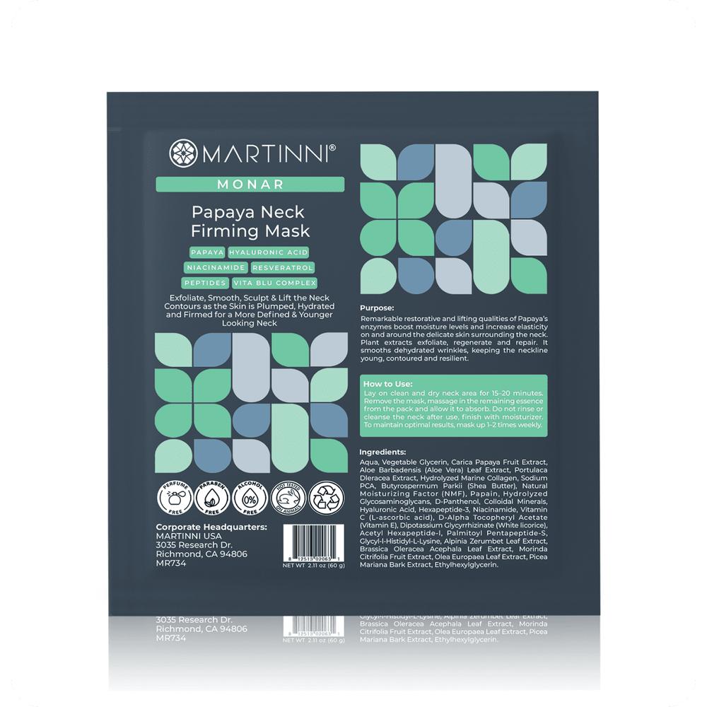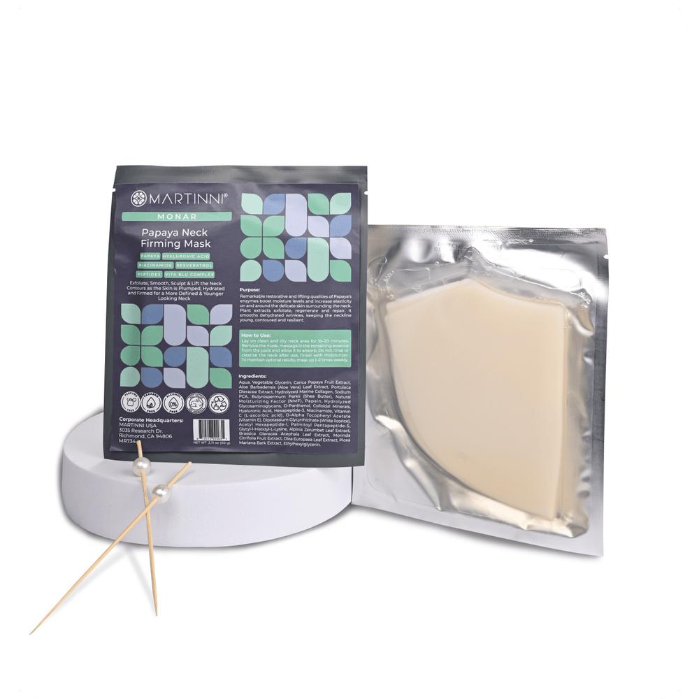Papaya Firming Neck Mask / Pack of 15 - Each Pre-Moistened 100% Natural and Paraben Free Mask is Single Use by Martinni