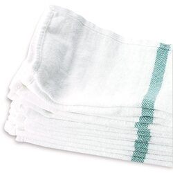 Barber Towel- 100% Cotton- 22oz - 15" x 26"- White with Green Stripe - package includes 1 dozen heavy duty towels
