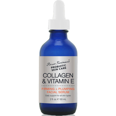 Pierre F - Probiotic Skin Care - Collagen & Vitamen E Firming and Plumping Facial Serum / 2 fl. oz. - 60 mL. Collagen combined with Vitamin E antioxidants fight free radicals caused by stress, pollution and sun exposure. Keeps skin nourished and hydrated for a moreplump appearance.