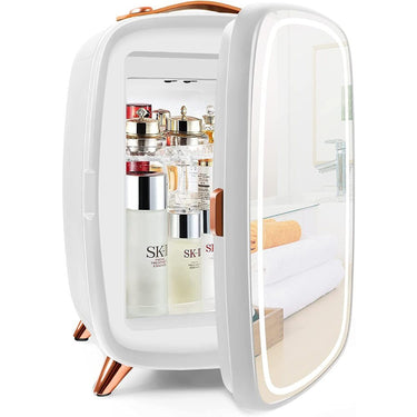 Portable Beauty Fridge with LED Lighting and Mirrored Door. Introducing the Portable Beauty Fridge with LED Lighting and Mirrored Door - the perfect way to keep your skincare and beauty products cool, fresh, and easily accessible. With its compact size and portable design, this mini fridge is perfect for spas, salons, and personal spaces.