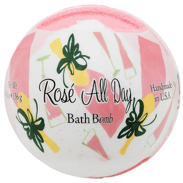 Primal Elements Bath Bomb - ROSEÉ ALL DAY / 4.8 oz - 136 grams. Primal Elements hand-pressed bath bombs are an explosion of fun for your tub! Drop one of these effervescent delights into a tub of bath water and watch the magic happen. Bath Bombs create a fizzing action in the water releasing fragrance and vivid color. As the Bath Bomb dissolves, our blend of moisturizingshea butter, coconut oil, argan oil and vitamin e soften the water and leaves skin feeling soft and velvety smooth. Made in the U.S.A.